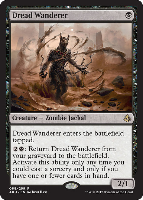 {2}{B}: Return Dread Wanderer from your graveyard to the battlefield. Activate this ability only any time you could cast a sorcery and only if you have one or fewer cards in hand.
