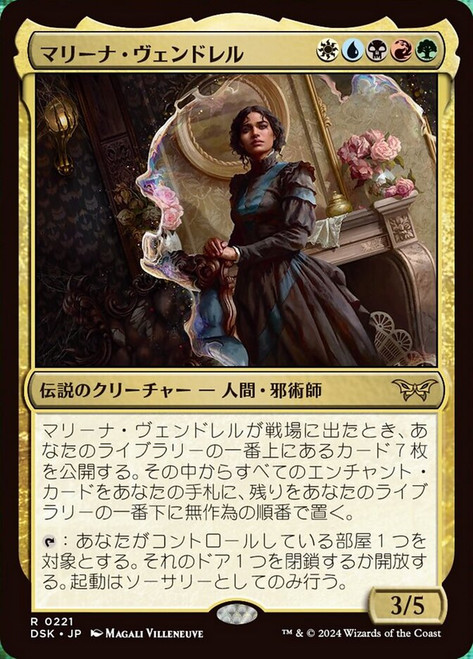 When Marina Vendrell enters, reveal the top seven cards of your library. Put all enchantment cards from among them into your hand and the rest on the bottom of your library in a random order.